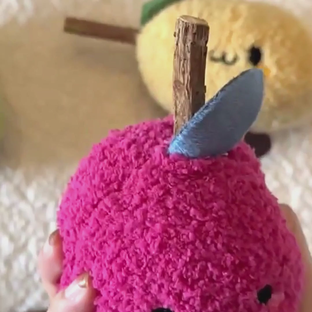 Is your cat a fan of chewing and playing? This cute apple toy offers more than just charm; it’s packed with benefits for your beloved kitty. Made from soft millet fleece and stuffed with a fresh silvervine stick, it’s designed to engage your cat’s natural chewing instincts.