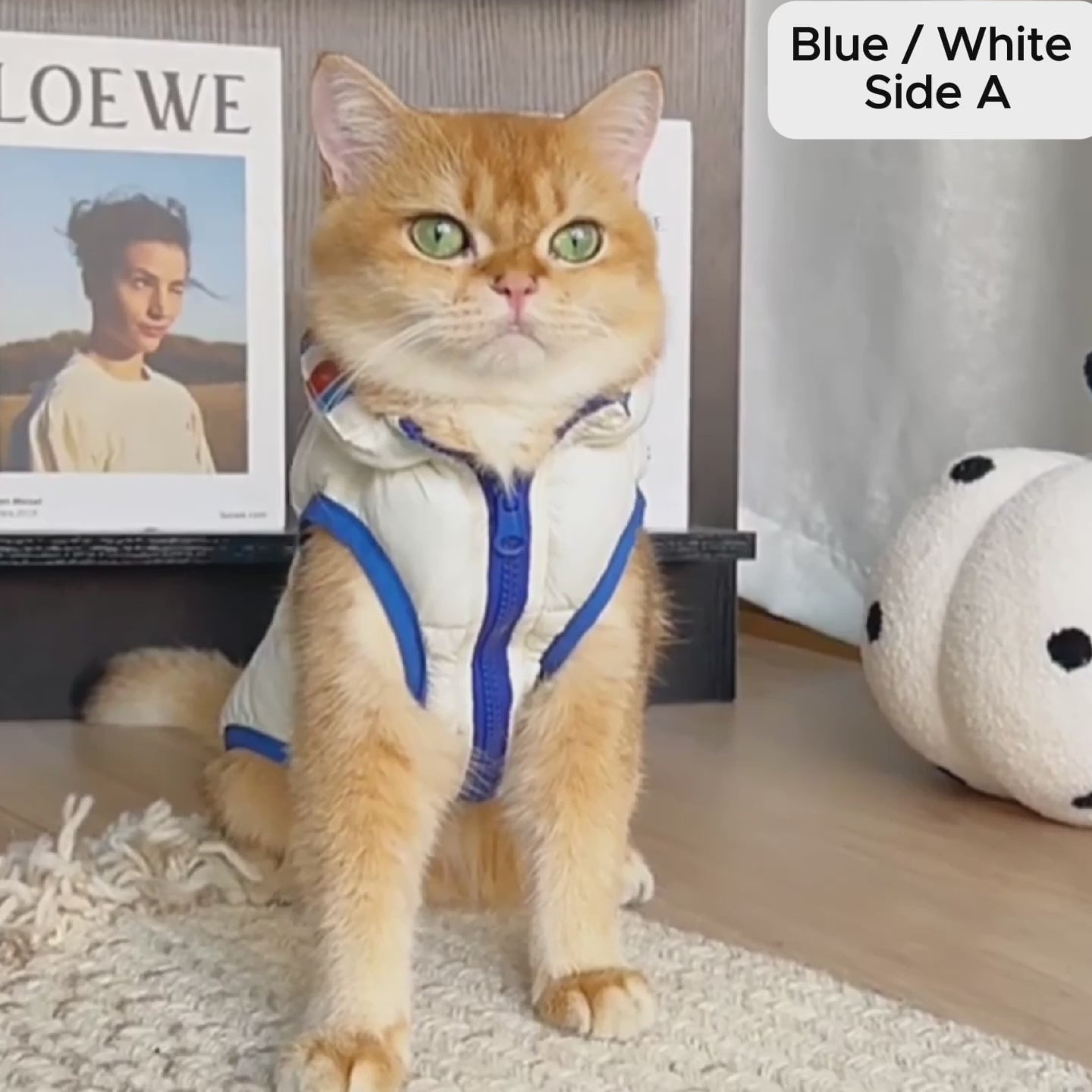Made from lightweight, comfy fabric with soft padding, it feels just like a warm cuddle, letting your feline strut their stuff with ease. The handy leash hole and smooth zipper make outings a breeze. Whether your kitty’s feeling bold or subtle, this jacket has their mood (and their fluff) covered.