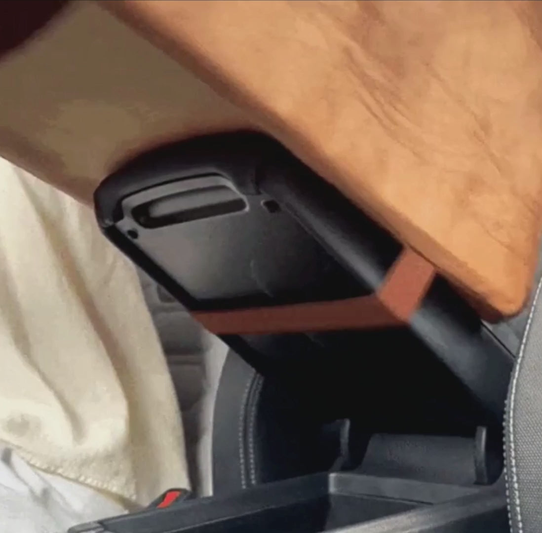 - Built-in straps lock to the center console for wobble-free rides